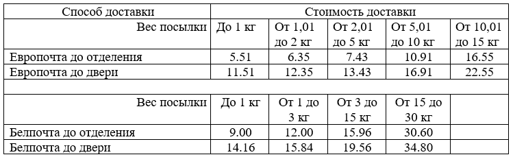 Тарифы на доставку РУП «Белпочта» и «Европочта»