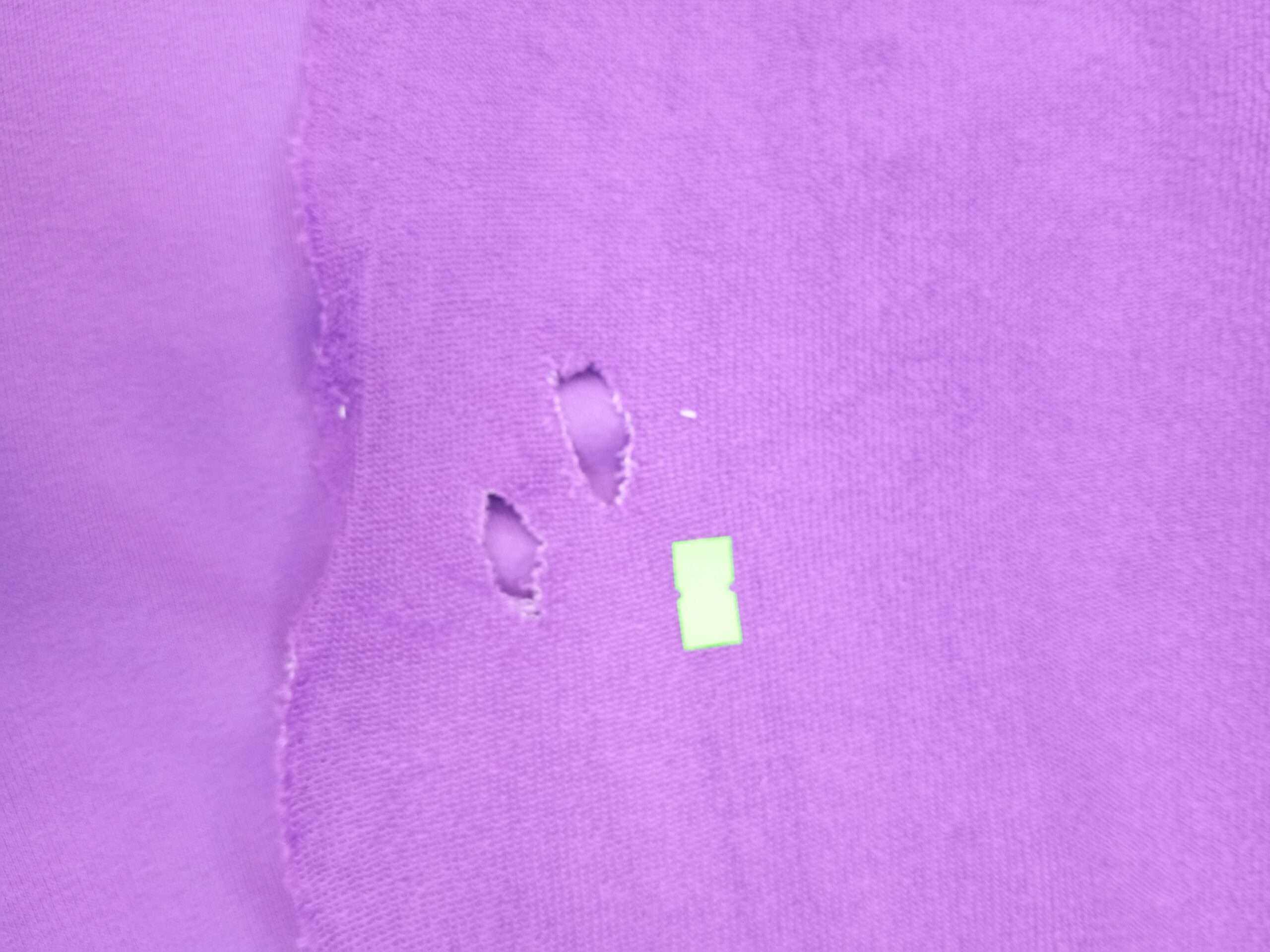 Залом в 10см от кромки. Встречаются дырочки в 10см от кромки. В одном месте уходит кромка на 7см.